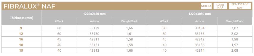SPANOLUX - FIBRALUX® NAF - High quality no added formaldehyde resin (NAF) MDF board, for use in dry conditions and in all load duration categories